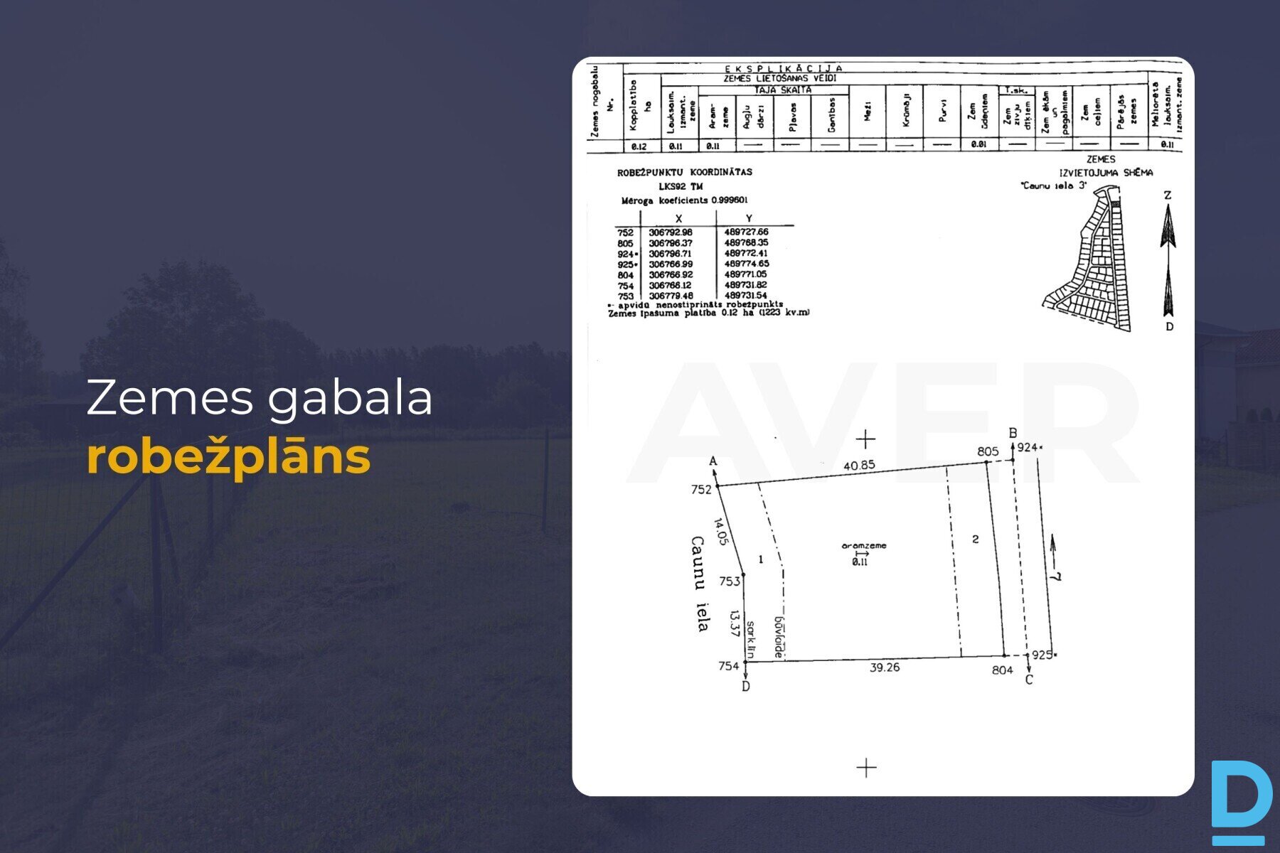 Pārdošanā 1223 m² zemes gabals privātmājas būvniecībai slēgtā ciematā "Lapsas". Pieejamās komunikācijas: - blakus pieejams elektrības pieslēgums; - ciemata centrālais ūdensvads (ūdens ieguve no artēziskā urbuma); - nepieciešams izveidot vietējo bioloģisko kanalizāciju; - iespējams pieslēgt gāzesvadu. Zeme atrodas savrupmāju apbūves teritorijā (DzS). Galvenie izmantošanas veidi: - savrupmājas būvniecība; - dvīņu mājas būvniecība. Apbūves noteikumi: - maksimālais apbūves blīvums - 30%; - maksimālais stāvu skaits - 3 stāvi; - maksimālais apbūves augstums - 12 metri; - zemes vienības minimālā ielas fronte -15 m. Mūsdienīgs privātmāju ciemats ar asfaltētām un apgaismotām ielām, bruģētiem gājēju celiņiem. Pilnībā nožogota, droša ciemata teritorija ar labiekārtotu aktīvās atpūtas zonu bērniem. 10-15 minūšu braucienā atrodas visa ikdienā nepieciešamā infrastruktūra - prestižas izglītības iestādes, lielveikali, tirdzniecības centri Spice un Spice Home. Līdz Rīgas centram ~ 20 minūšu brauciens ar auto. Tuvākajā apkaimē pieejamas vairākas atpūtas vietas pie dabas. Zvaniet, rakstiet (SMS, Whatsapp, E-mail), lai noskaidrotu sīkāku informāciju. |